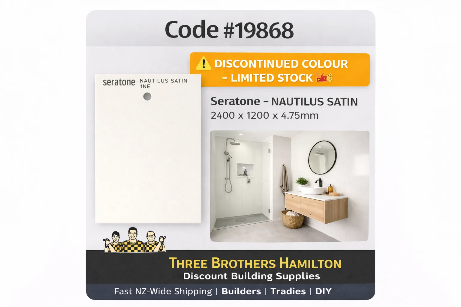Seratone Nautilus SATIN Wet Wall Lining 2400×1200 mm *